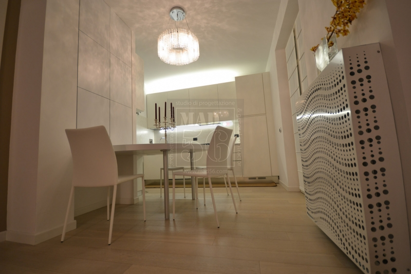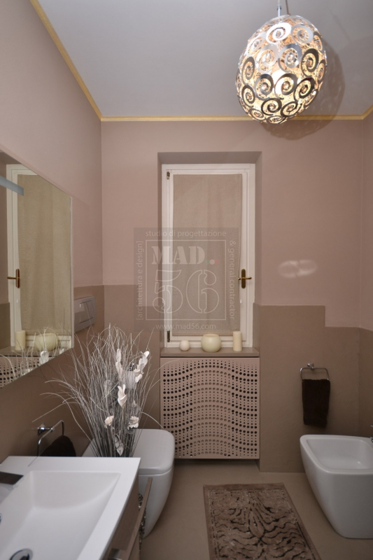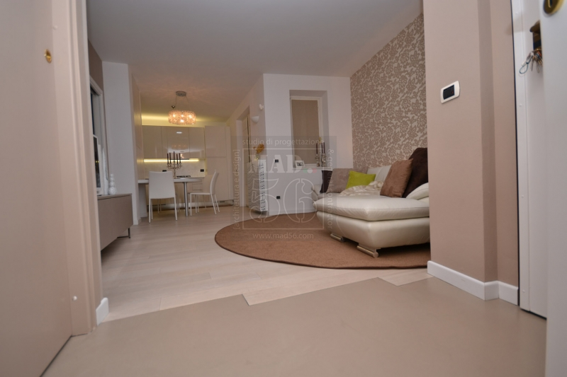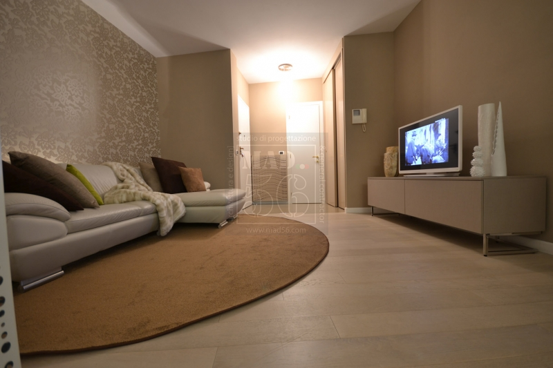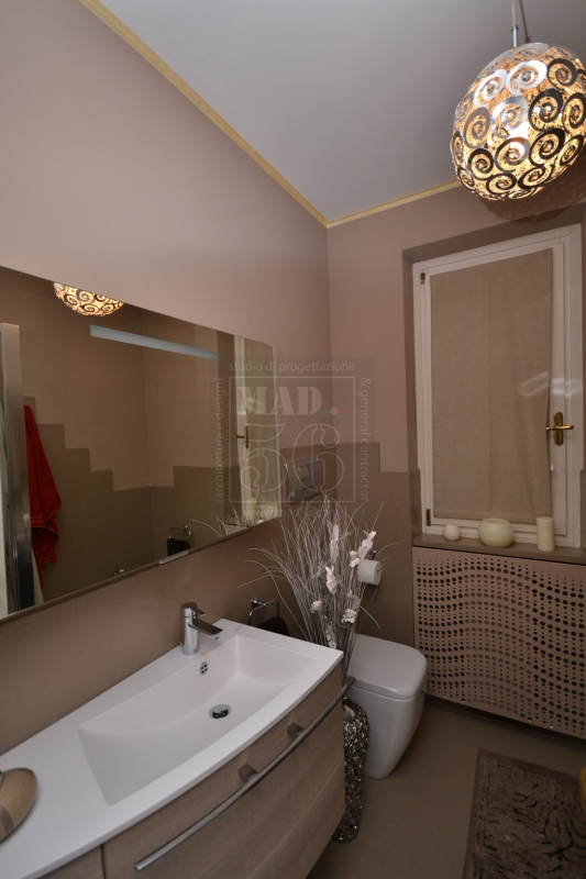 Ristrutturazione completa degli ambienti interni realizzata in tempi molto contenuti, con resine, carte da parati, tendaggi e arredi di pregio, amalgamando il tutto con colori tenui e naturali, che rendono l’ambiente raffinato e chic.