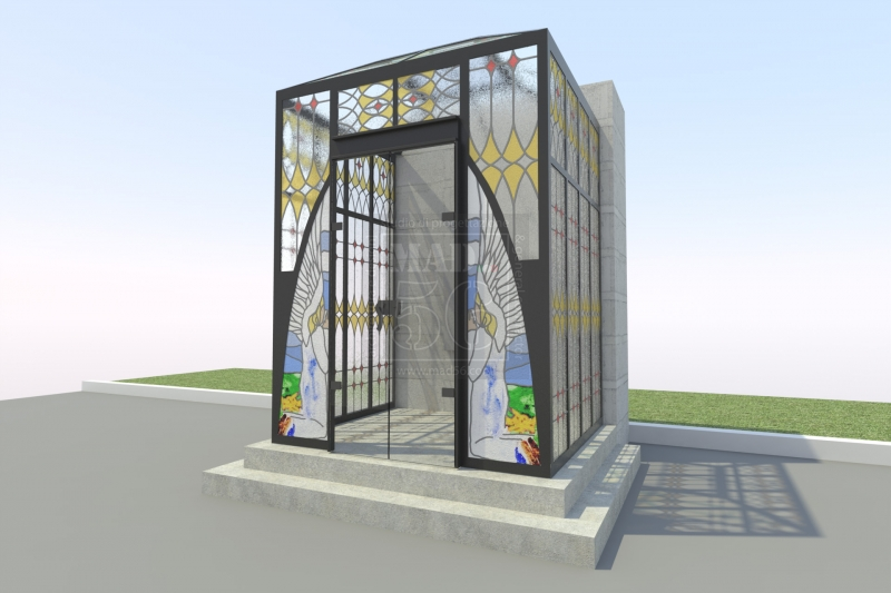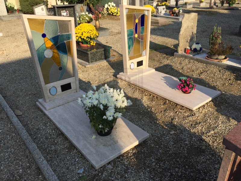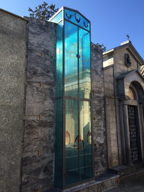 L'idea progettuale/artistica nasce da Azzurrocielo, per portare l'atmosfera gotica nelle tombe dei nostri cari: un suggestivo passaggio artistico d'autore per il viaggio in cielo. Progettiamo e realizziamo a "regola d'arte" tutto quanto è necessario: pratica edilizia, progettazione esecutiva, realizzazione di opere in muratura e di vetrate gotiche con la tecnica Tiffany. Il risultato è una vetrata strutturale con profili per serramenti in alluminio o ferro a scelta, doppi vetri antisfondamento o temprati con vetrocamera al cui interno vengono inserite le vetrate Tiffany. Eseguiamo progetti su misura e preventivi a richiesta, anche per semplici lapidi a terra con la medesima tecnica; il tutto con un'elevata qualità ad un costo accessibile.